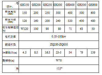 GX型螺旋輸送機系列技術(shù)參數(shù)